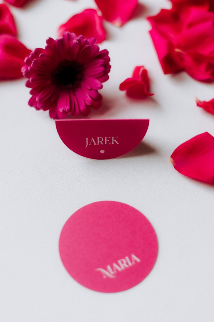 Winietki – porządkują przestrzeń. Goście od razu wiedzą, gdzie usiąść, czują się zaopiekowani. To też świetny sposób na personalizację – małe szczegóły robiące duże wrażenie.